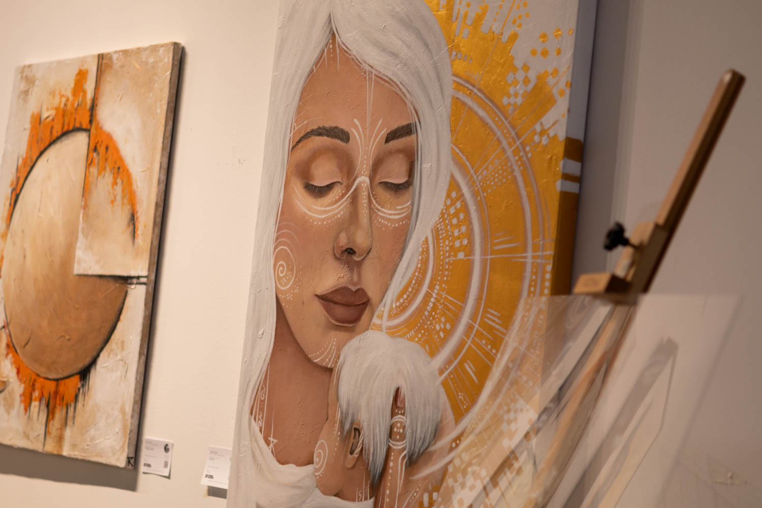 Working intuitively with movement and symbol, Koski allows each piece to unfold one brushstroke at a time. Her paintings reflect sensitivity and energy, inspired by life, nature, and the subtle moments often overlooked. Each work invites the viewer to pause, feel, and discover personal meaning within the image.